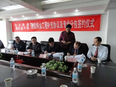 受青海水電集團(tuán)董事長(zhǎng)唐增科的委托,副總經(jīng)理吳世周與中鐵隧道股份公司簽署了調(diào)水總干渠TBM段剩余工程補(bǔ)充協(xié)議,中鐵隧道股份公司與CMC公司簽署了調(diào)水總干渠TBM段剩余工程專業(yè)分包合同??偝邪?、分包人代表分別在儀式上發(fā)言,表示將把握好機(jī)遇,認(rèn)真履行義務(wù),全面落實(shí)分包合同,盡快擺脫TBM施工所處的困境,開創(chuàng)工程建設(shè)的新局面,不辜負(fù)項(xiàng)目業(yè)主的期望,為青海經(jīng)濟(jì)社會(huì)發(fā)展做出貢獻(xiàn)。簽約儀式的舉行,標(biāo)志著調(diào)水總干渠剩余工程建設(shè)進(jìn)入克難攻堅(jiān)的關(guān)鍵階段。依照合同約定,CMC公司將在3月中旬進(jìn)場(chǎng)開展交接和設(shè)備改造等工作,為TBM恢復(fù)掘進(jìn)做好準(zhǔn)備。