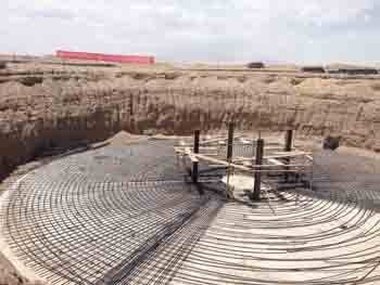 該風(fēng)電場(chǎng)項(xiàng)目位于海西州茫崖石棉礦區(qū)南部,規(guī)劃裝機(jī)容量200兆瓦,總投資約25億元,擬分兩期實(shí)施。一期項(xiàng)目先行裝機(jī)20兆瓦,共安裝8臺(tái)2.5兆瓦的風(fēng)電機(jī)組,投資約3億元。其發(fā)電機(jī)組及附屬設(shè)備由東方電氣股份有限公司中標(biāo)供應(yīng),基礎(chǔ)工程由青海水電實(shí)業(yè)有限責(zé)任公司中標(biāo)承建,風(fēng)電塔架設(shè)備由中國水利水電第四工程局有限公司中標(biāo)供應(yīng),甘肅三維水電工程建設(shè)監(jiān)理有限公司青海分公司負(fù)責(zé)監(jiān)理工作。經(jīng)過青海水電集團(tuán)茫崖風(fēng)電有限公司認(rèn)真籌劃和精心準(zhǔn)備,該項(xiàng)目于55開工。截至626,開挖直徑22、深4的機(jī)組基礎(chǔ)開挖、墊層混凝土澆筑及基礎(chǔ)環(huán)安裝全部完成,目前正在加緊進(jìn)行底座鋼筋混凝土澆施工,預(yù)計(jì)8月底開始塔筒和機(jī)組安裝工作,10月底具備調(diào)試和試運(yùn)行條件。