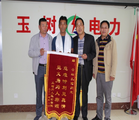 玉樹電力公司黨委書記、總經(jīng)理白瑪然丁同志表示,尕松扎西同志這種見義勇為行為,得到檢察院全體職工的認可,為有這樣優(yōu)秀的員工而感到高興,希望全體職工向尕松扎西同志學習。
