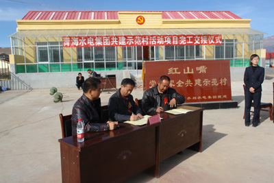 海北州州委常委、門(mén)源縣縣委書(shū)記董金明,門(mén)源縣委常委、組織部部長(zhǎng)尹京輝,青海水電集團(tuán)總經(jīng)理、“黨政軍企共建示范村”活動(dòng)領(lǐng)導(dǎo)小組組長(zhǎng)王海青,集團(tuán)公司黨委副書(shū)記、工會(huì)主席李建民,集團(tuán)計(jì)劃投資部副部長(zhǎng)李宏緒等參加了交接儀式。