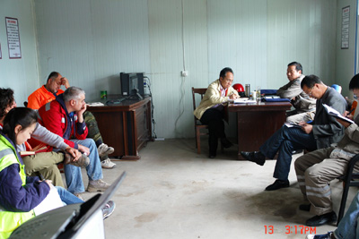 在位于門源縣青石嘴鎮(zhèn)的調(diào)水總干渠進(jìn)口段工地,唐董事長深入隧洞3公里開挖處,仔細(xì)察看不洞室鉆爆斷面地質(zhì)構(gòu)造,詳細(xì)了解掘進(jìn)速度、出渣系統(tǒng)以及施工設(shè)備、人員配置等情況。在現(xiàn)場聽取了施工和監(jiān)理單位關(guān)于目前項(xiàng)目施工進(jìn)展、TBM掘進(jìn)機(jī)組裝、后續(xù)施工計(jì)劃等的工作匯報(bào)后,唐董事長指出,自CMC公司進(jìn)駐隧洞進(jìn)口以來,經(jīng)過全體施工人員的共同努力,整個(gè)工程形象有了很大的改觀,對(duì)此應(yīng)充分肯定。唐董事長強(qiáng)調(diào),目前整個(gè)大通河正處于汛期,存在出現(xiàn)較大洪水的可能,參建各方要牢固樹立防大汛的思想,做好防汛各項(xiàng)準(zhǔn)備工作,安排專人進(jìn)行24小時(shí)值班和巡查,確保人員、設(shè)備和工程安全;施工單位要盡快制定嚴(yán)密、切實(shí)可行的工期安排計(jì)劃,充分利用可以利用的時(shí)間和空間資源,加快進(jìn)度,確保10月15日TBM啟動(dòng)并開始掘進(jìn);同時(shí),要盡快制定相應(yīng)的規(guī)范和規(guī)章,加強(qiáng)組織調(diào)度和工序銜接,保證施工順利、有序進(jìn)行。