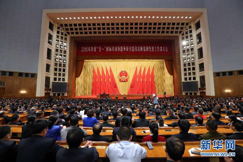 中國特色社會主義事業(yè)大廈是靠一磚一瓦砌成的,人民的幸福是靠一點一滴創(chuàng)造得來的。勞動模范和先進工作者是堅持中國道路、弘揚中國精神、凝聚中國力量的楷模,他們以高度的主人翁責任感、卓越的勞動創(chuàng)造、忘我的拼搏奉獻,為全國各族人民樹立了學習的榜樣。“愛崗敬業(yè)、爭創(chuàng)一流,艱苦奮斗、勇于創(chuàng)新,淡泊名利、甘于奉獻”的勞模精神,生動詮釋了社會主義核心價值觀,是我們的寶貴精神財富和強大精神力量。今天受到表彰的全國勞動模范和先進工作者,就是我國億萬勞動人民的杰出代表。黨和人民感謝你們!全社會都要向你們學習!